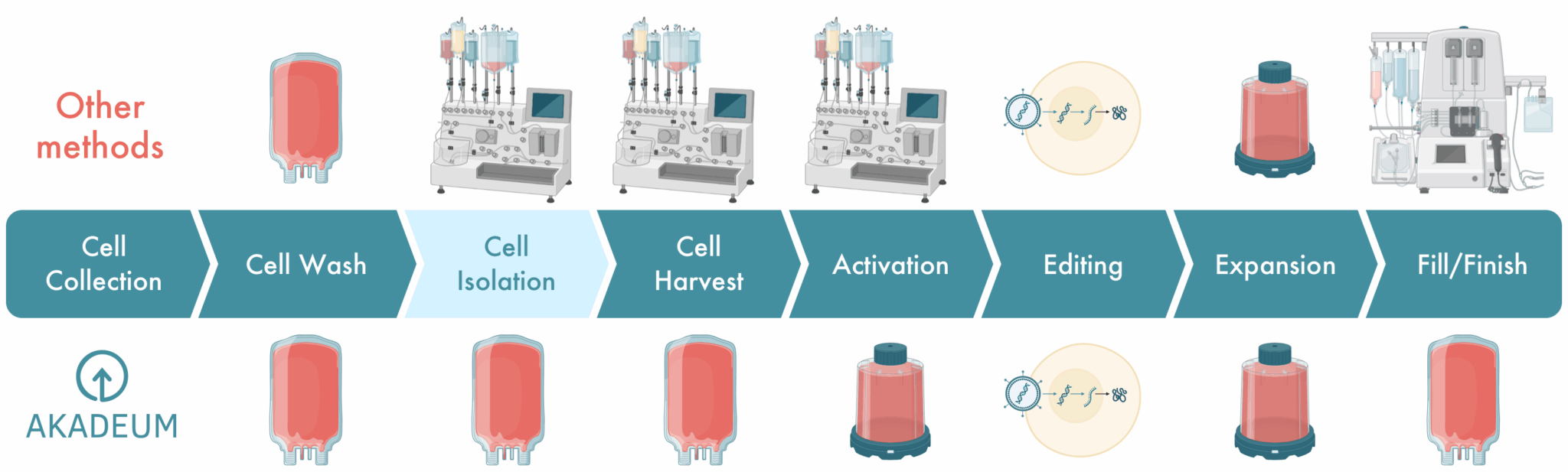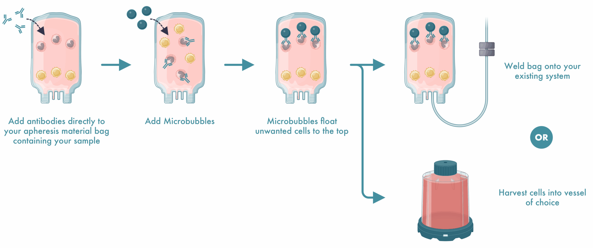 Akadeum’s microbubble technology is the first GMP cell separation modality to solve all the challenges in the early steps of the cell therapy manufacturing process: time, cost, scalability, and performance.